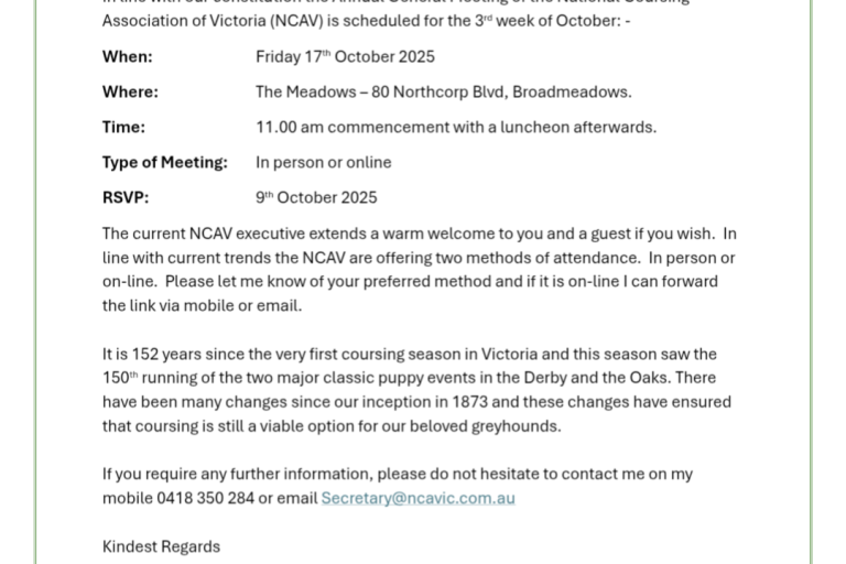 The calendar for our 2025 season is out now and we expect a superb opening round to be conducted at Longwood Coursing Club on the 27th April 2025 and the…