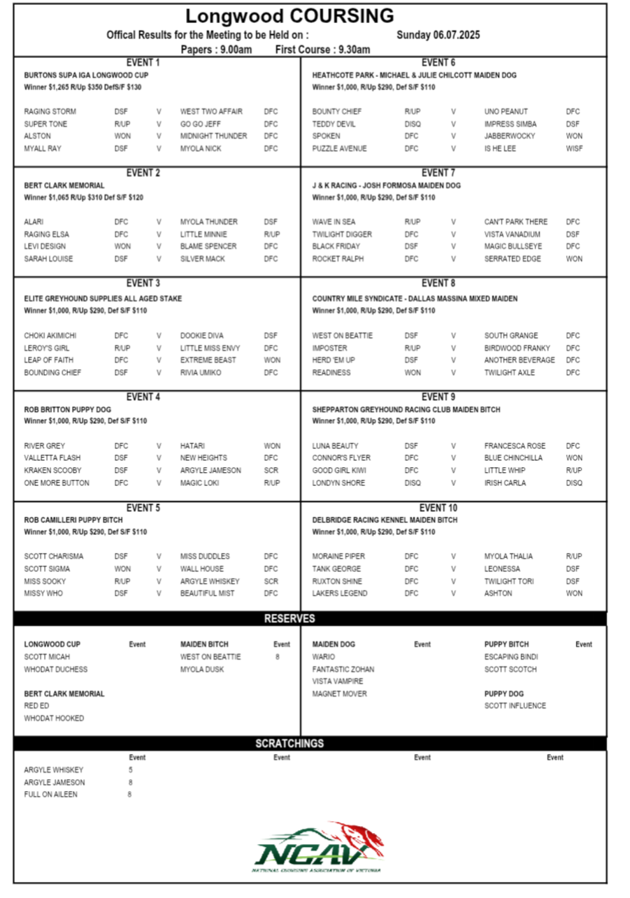 Click on the links below for the latest Victorian coursing results.